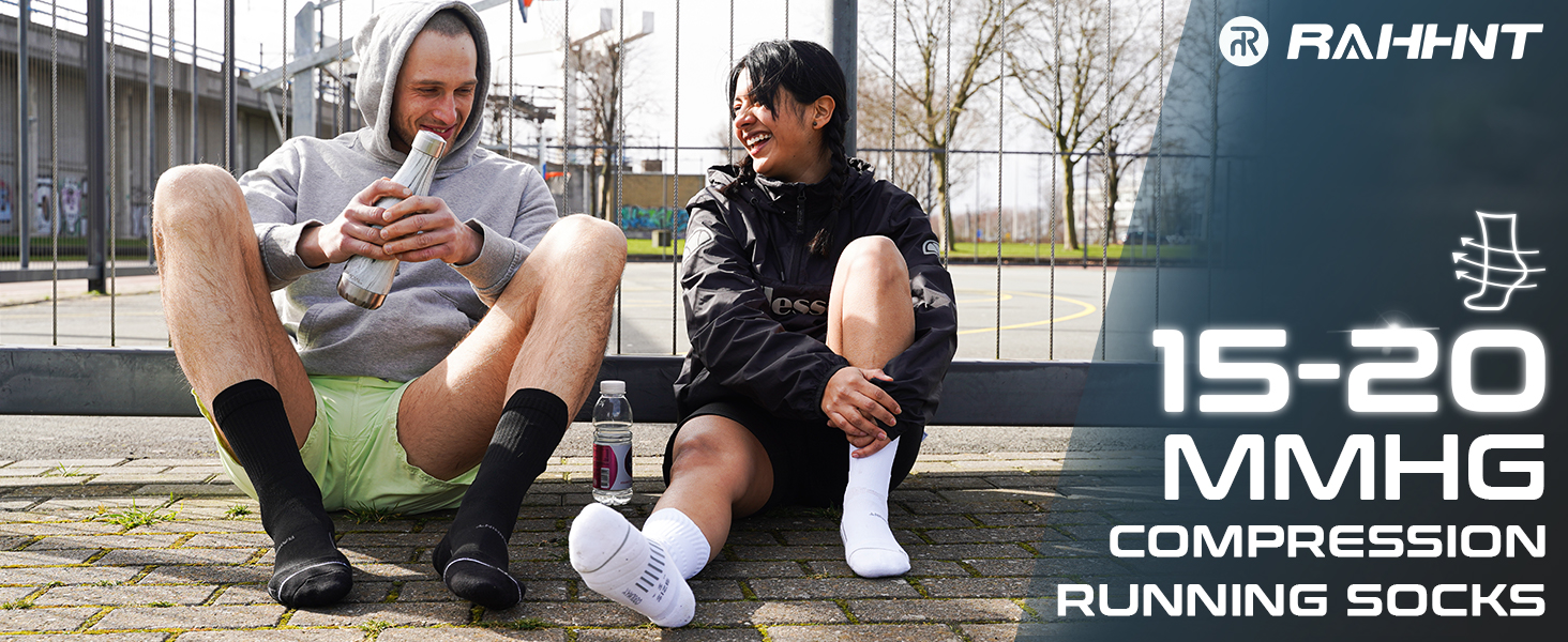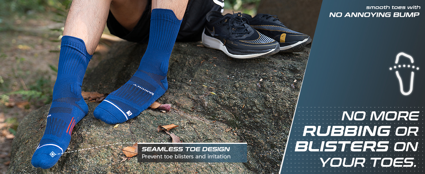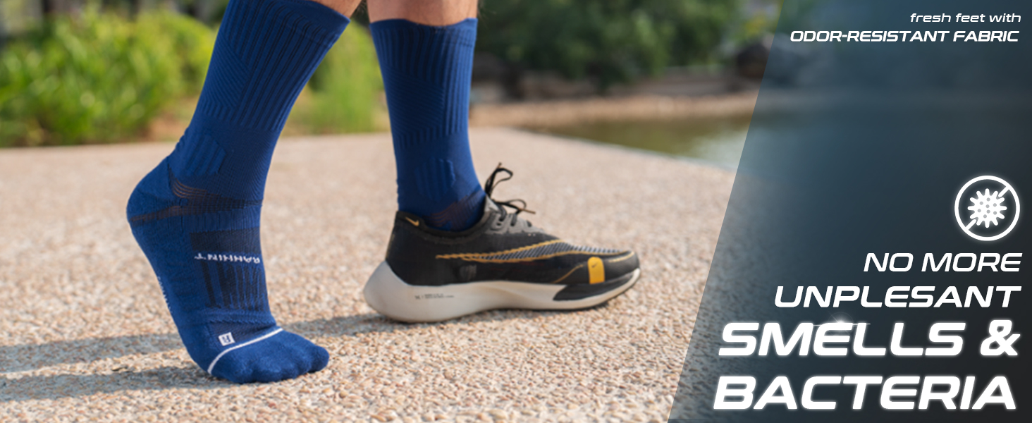 Compression Running Socks 3 Pairs, Cushion Crew Socks, Anti-Blister Moisture Wicking Athletic Hiking Basketball Socks