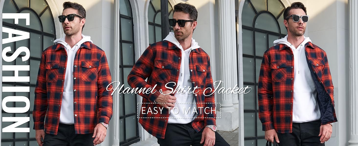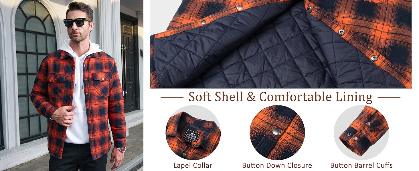 - Windproof: Padded with quilted polyester to keep wind out and create extra warmth while also creating breathability, it is a very classic flannel jacket.